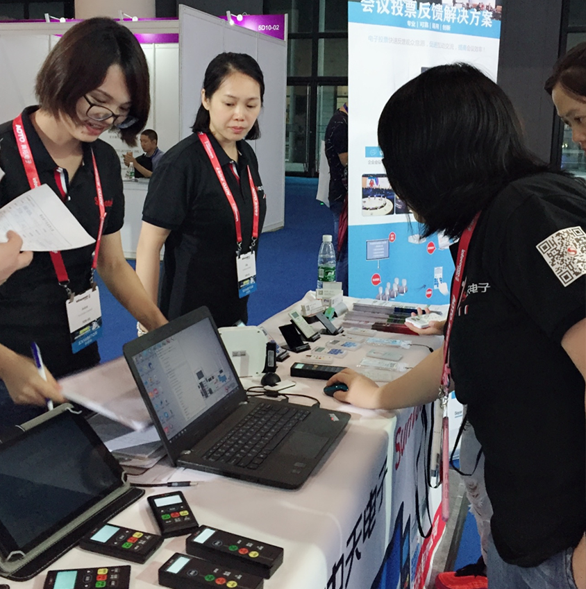 展会现场,长沙中天电子展台前人流络绎不绝,不少观众驻足咨询产品功能与应用方案。工作人员耐心为观众演示产品操作流程,详细解答使用场景适配、技术支持等疑问,重点围绕产品的便捷性与高效性展开专业讲解。多位来自学校、企业、政府机构的观众表达了强烈的合作意向,现场达成多项初步合作共识,充分印证了产品的市场认可度。