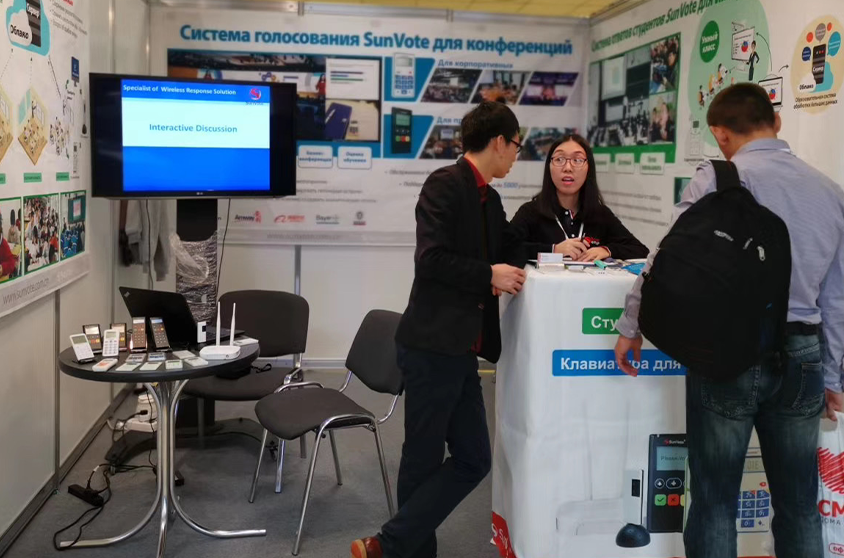 展会现场,中天电子展位前始终人流涌动,不少观众驻足围观产品演示,工作人员耐心细致地为每一位咨询者讲解产品功能、演示操作流程,并结合具体场景给出定制化解决方案。其中,议会电子表决系统凭借安全可靠的性能,成为政府类渠道商的咨询焦点;课堂互动反馈系统与课堂即时考练评估系统则吸引了当地经销商及学校代表的深入洽谈。据统计,展会期间共接待意向客户百余组,达成多项初步合作共识,为后续拓展俄罗斯及东欧市场奠定了坚实基础。