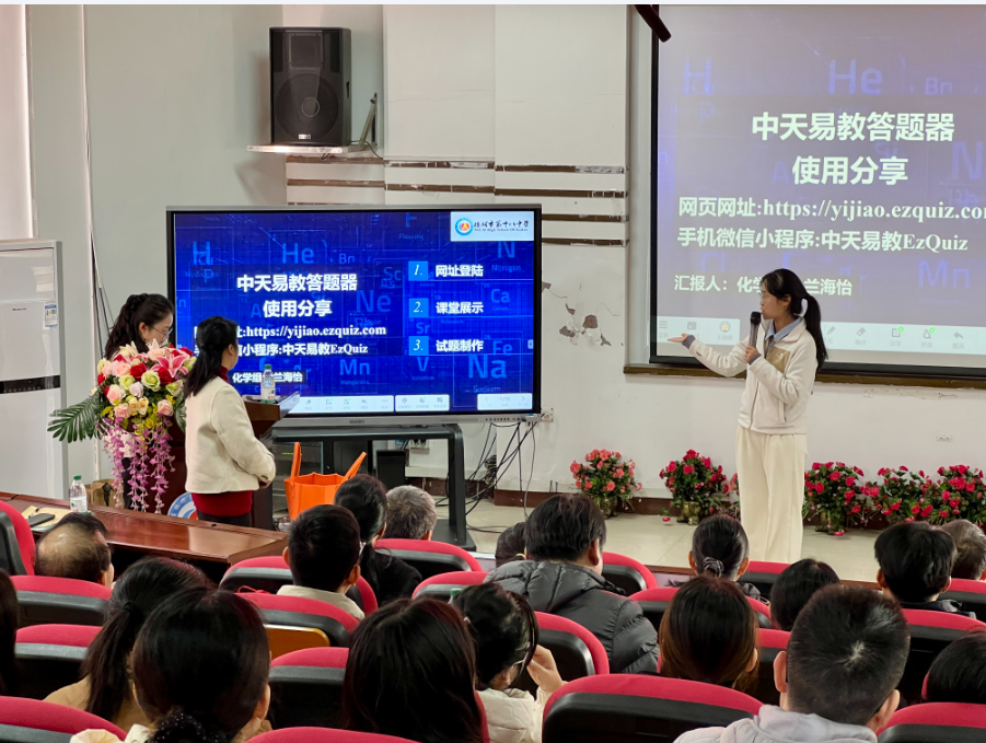数字化实践交流环节,桂林十八中化学、英语、物理学科教师代表,结合日常教学场景分享中天易教答题器应用心得,从不同维度印证工具的教学价值。