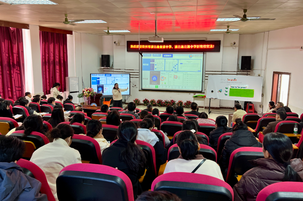 11 月 21 日,浦北县金浦中学张均冰副校长、北通中学校长温武带队,两所学校共计 97 名领导及学科教师赴桂林十八中开展校际交流,桂林十八中的谭红副校长,赵娜主任,王丽媛副主任进行了接待工作。活动通过校园参观、领导致辞、示范课观摩、数字化终端介绍、数字化实践交流等环节有序推进。作为深耕基础教育、数字化教学融合成效显著的优质示范校,桂林十八中以中天易教课堂即时反馈系统实操实践为核心,为两校搭建了经验互鉴平台,共同探讨数字化工具与课堂教学的深度融合。