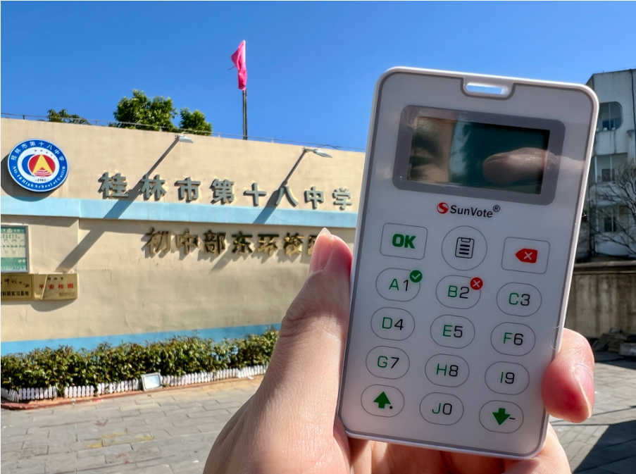 英语学科赵娜主任:“作为英语老师,答题器真的帮我们解决了不少教学难题。首先是全年级听力训练,以前总担心有学生偷懒不认真听,现在用答题器,每个学生的答题情况实时反馈,谁没认真答一眼就能看出来,哪道题错得多,我们就回头重听几遍,训练效果比以前扎实多了。然后是日常测验,英语选择题多,以前改卷得等机器扫描,现在学生答完题,系统当场就出结果,哪个语法点学生掌握得不好,马上就能针对性讲评,不用等第二天。还有课堂上搞观点调查的时候,用投票功能特别好,学生不用举手,按下投票器按键就能真实表达想法,不会因为怕和同学不一样就不敢选,比传统举手客观多了,而且它的组卷功能也很实用,能把所有资料扫描成电子档组卷,像我们复习的时候,挑几道题现场投影让学生作答,输完马上出结果,特别省事。”