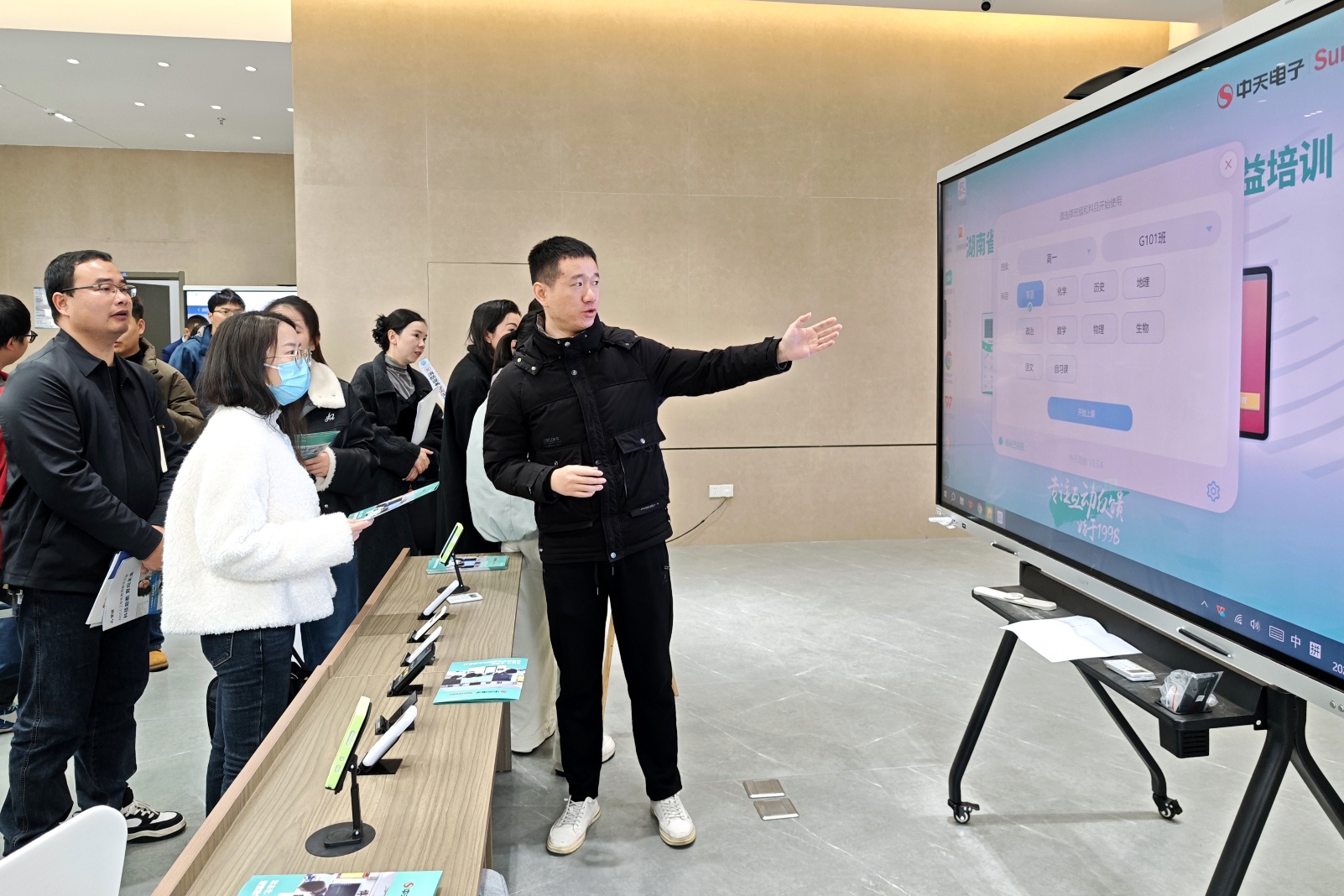 本次培训聚焦“数据驱动教学”与“智能技术进课堂”,呈现湖南人工智能与基础教育融合成果。长沙中天电子全程提供技术支持与现场服务。